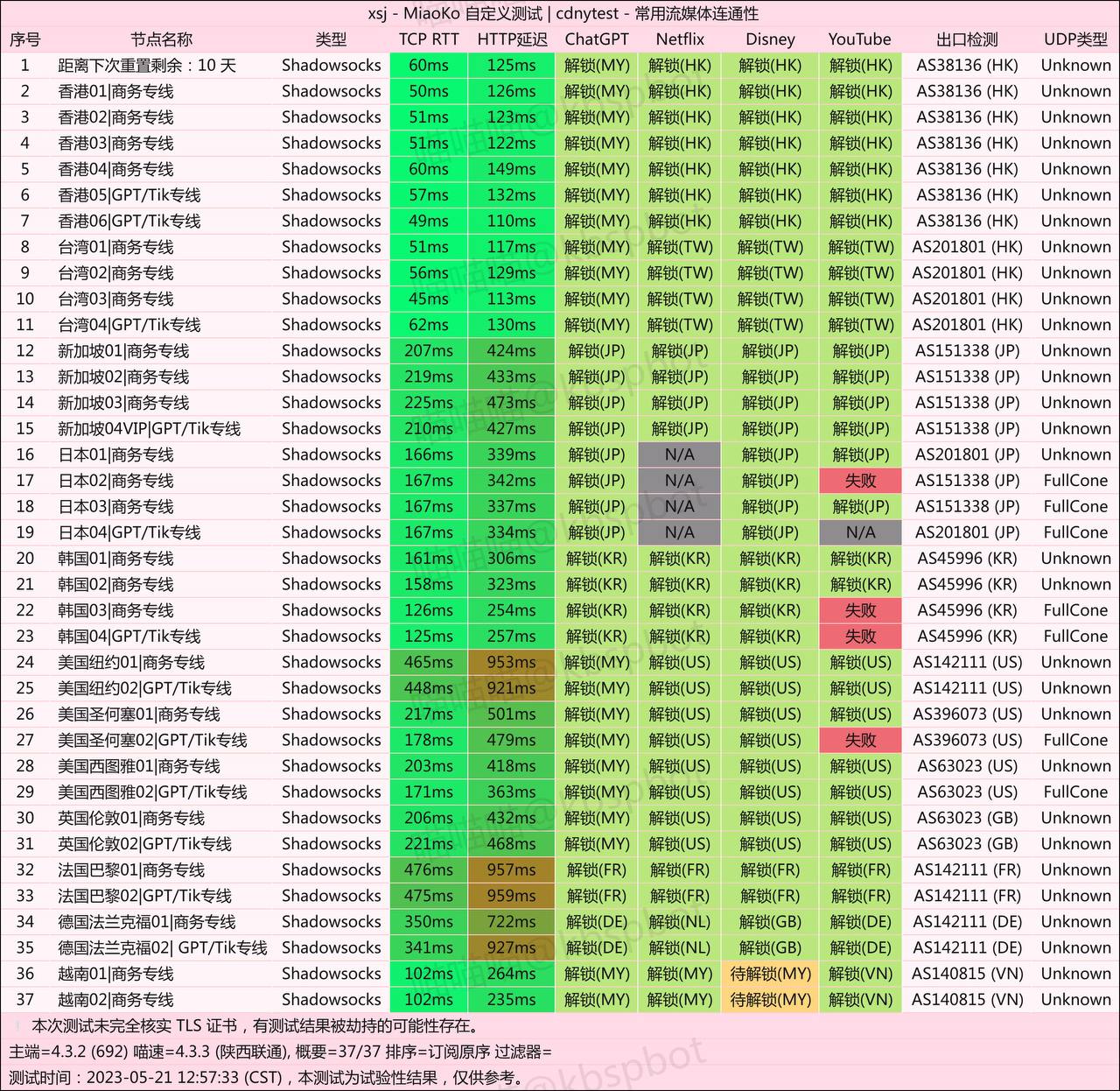 使用下来的感受就是:真快。测试下来节点几乎都可以用,软件测试所有都可以连通,随机测试部分节点油管 4K 流畅。